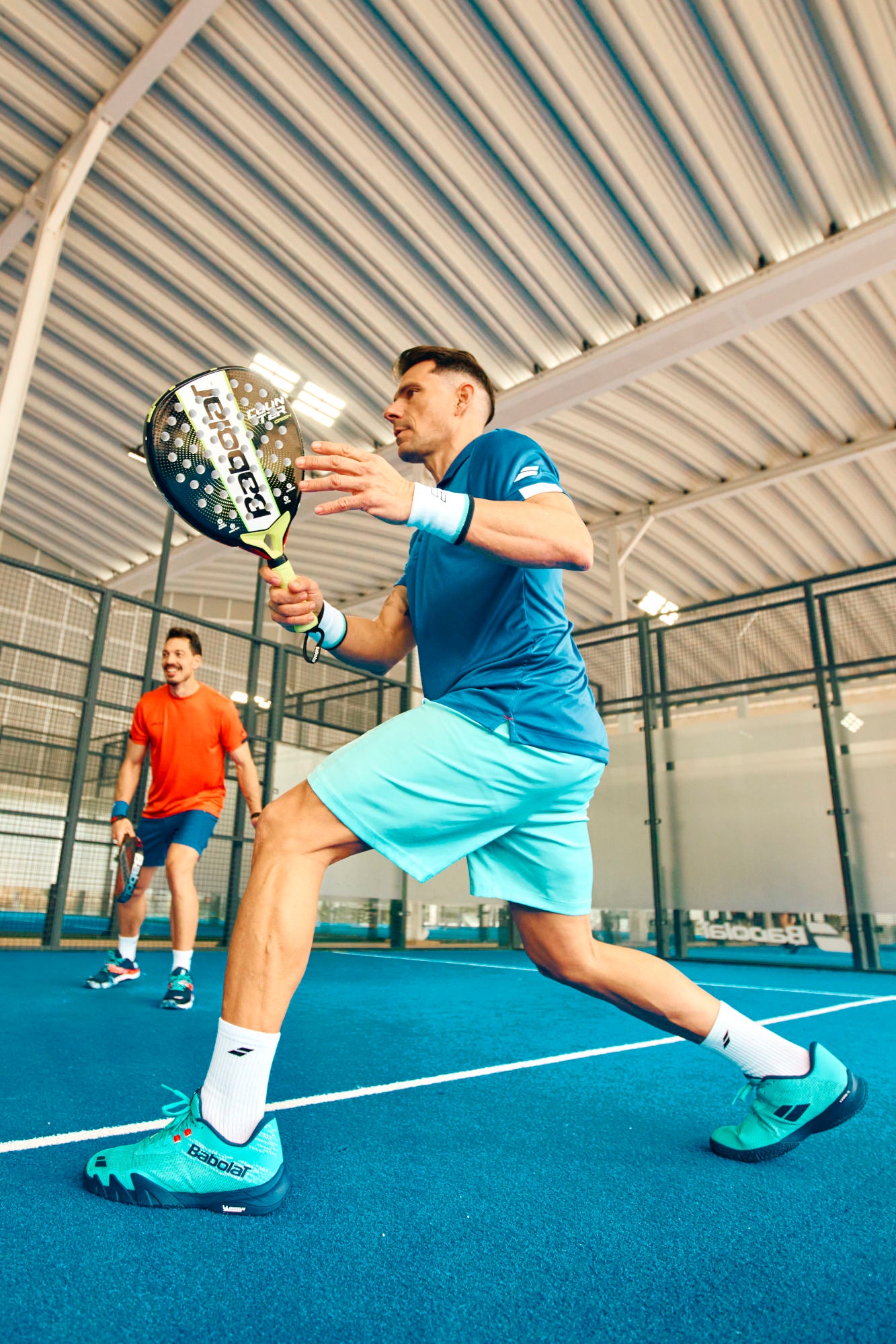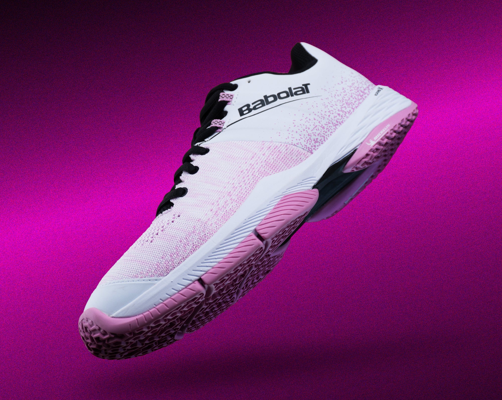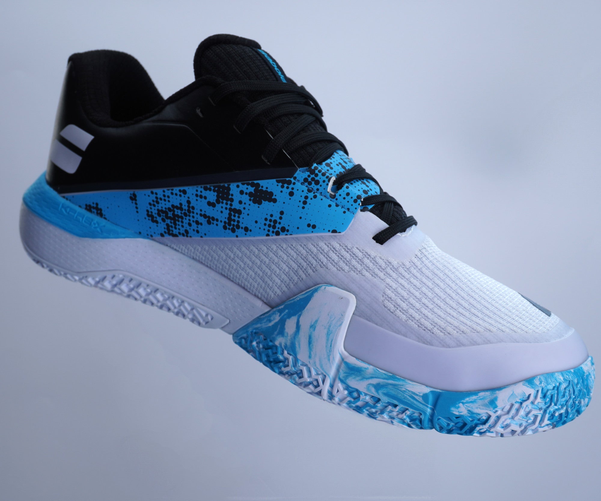 Babolat a été la première marque à lancer une gamme de chaussure dédiée exclusivement au padel. Ces chaussures disposent d’une construction spécifique, notamment au niveau de la semelle extérieure, favorisant les déplacements verticaux et la flexion de l’avant-pied pour plus de réactivité. Le motif est également différent et intègre des chevrons et des crampons pour s’adapter à toutes les pistes de padel.